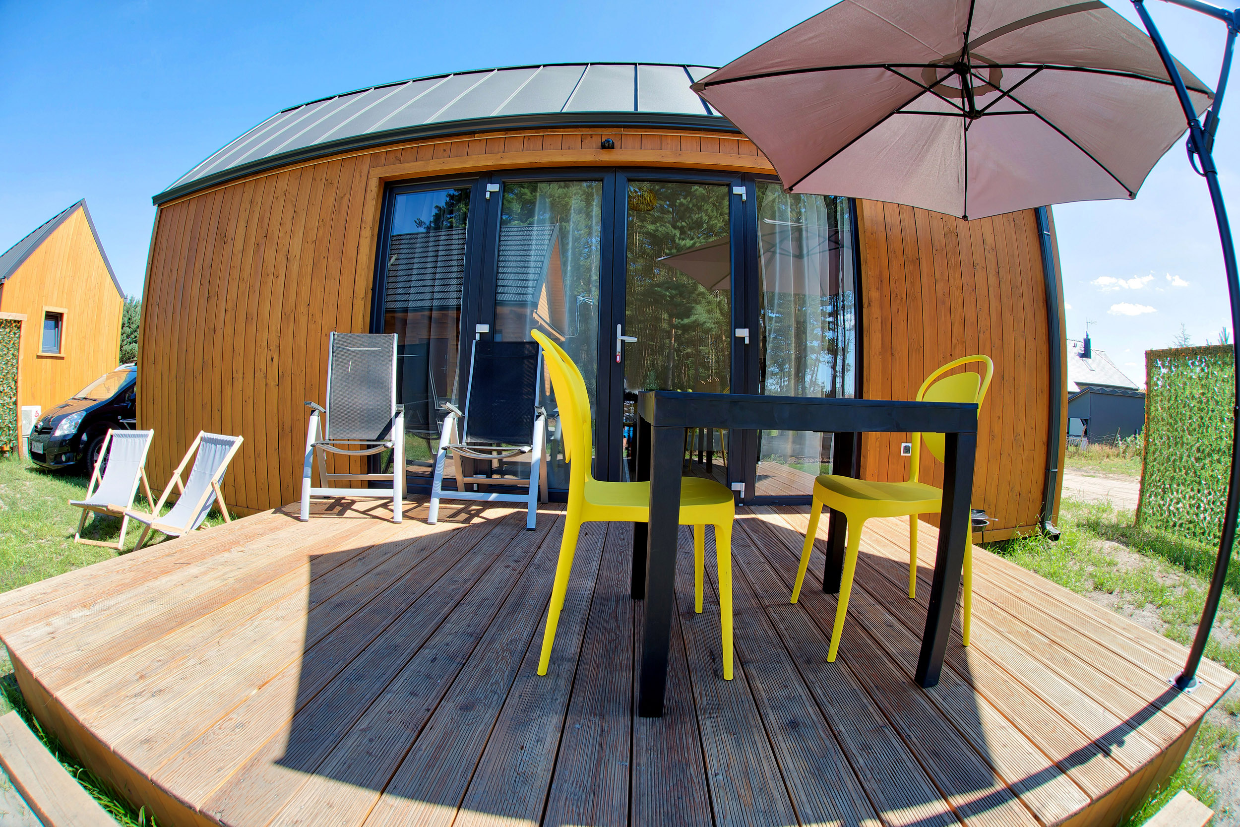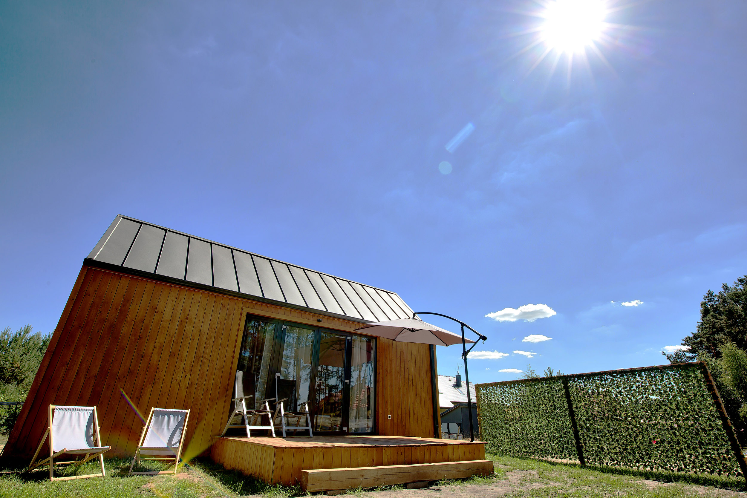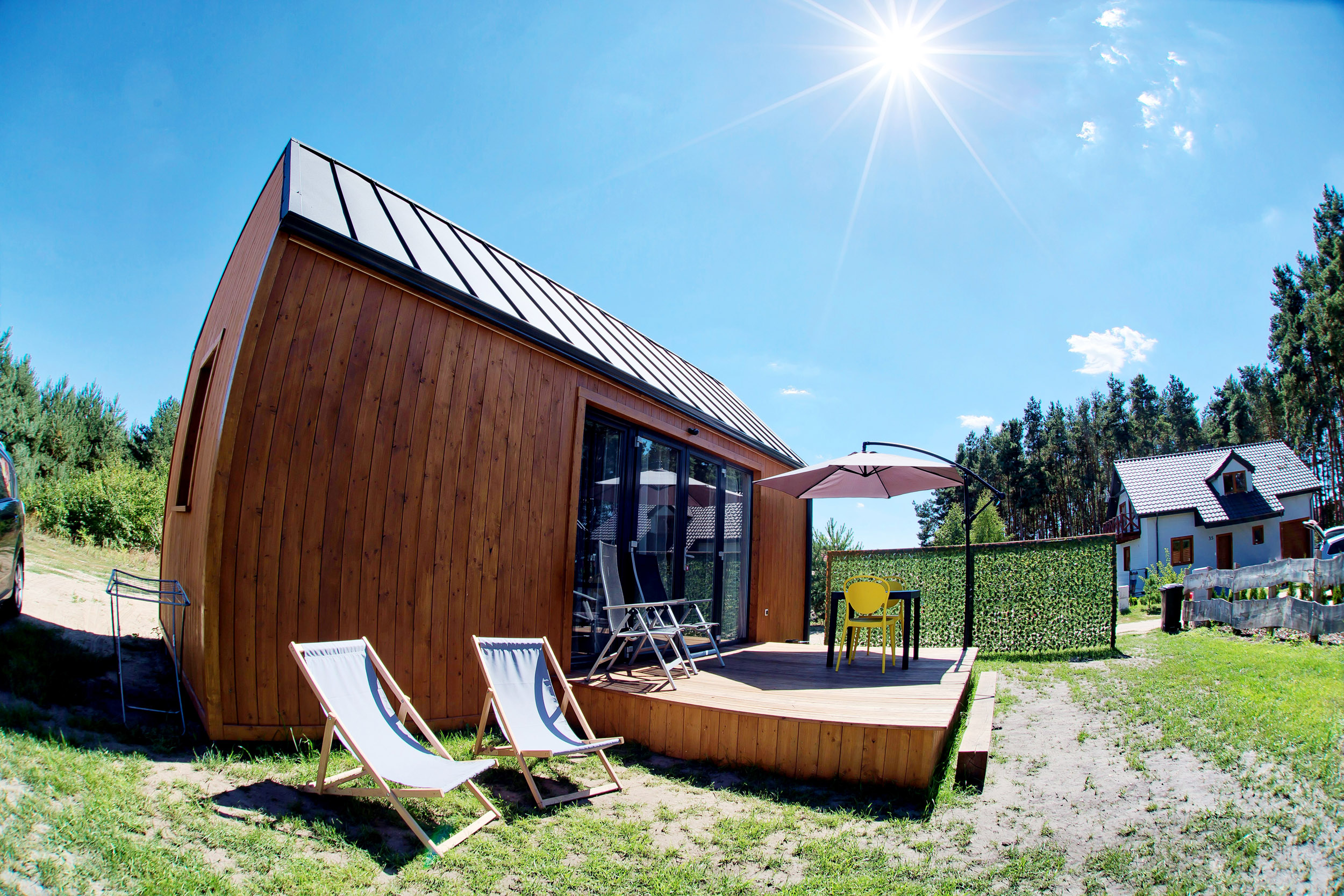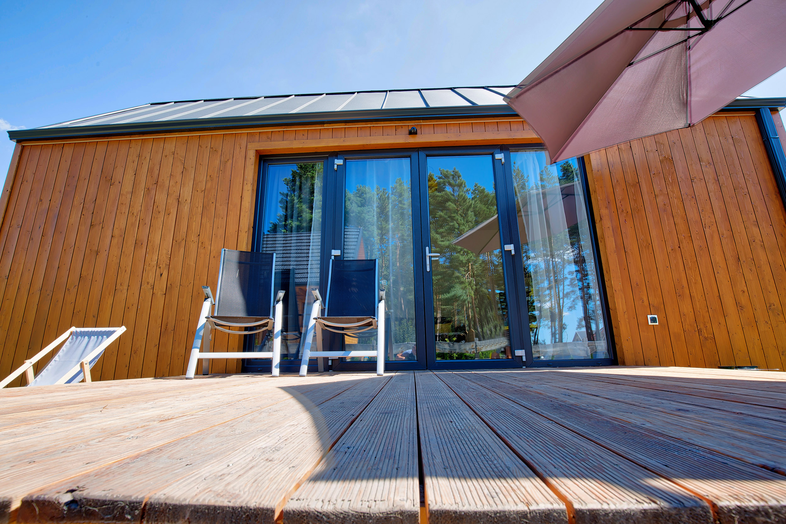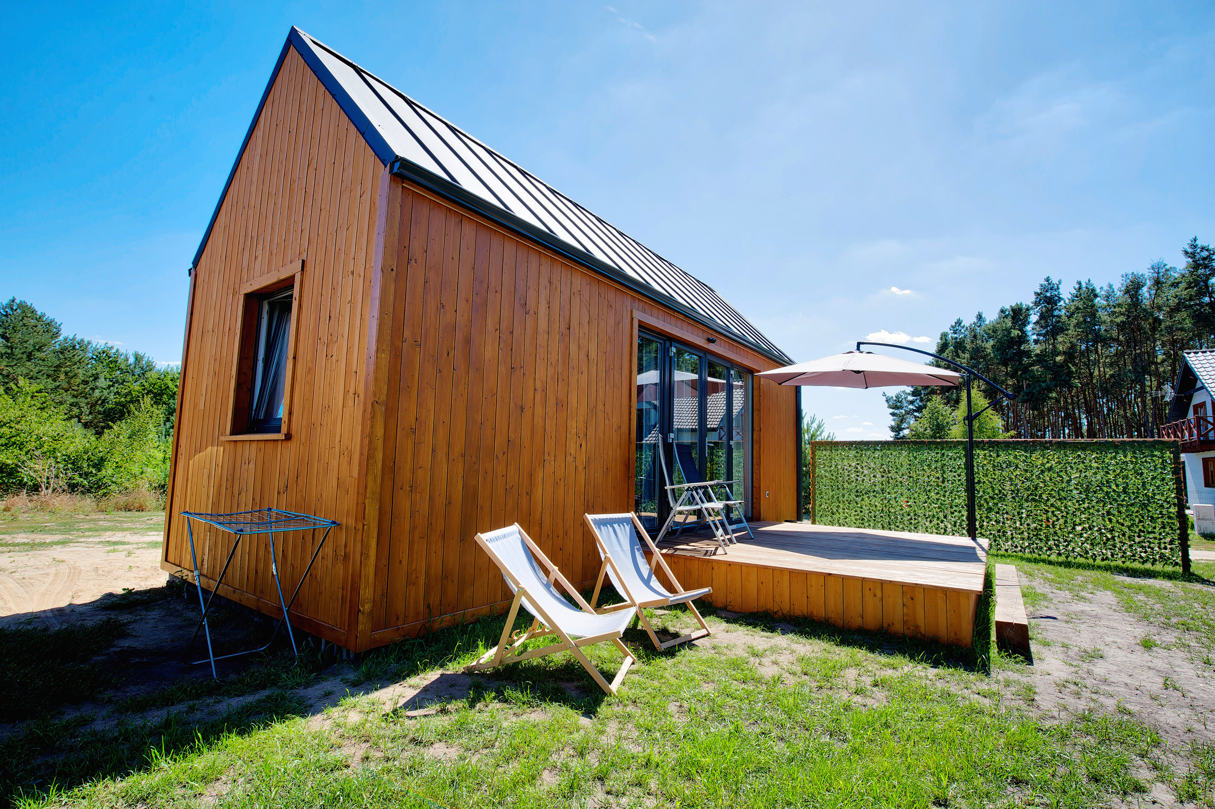 • Parasol, leżaki – każdy z domków posiada parasol tarasowy oraz leżaki.