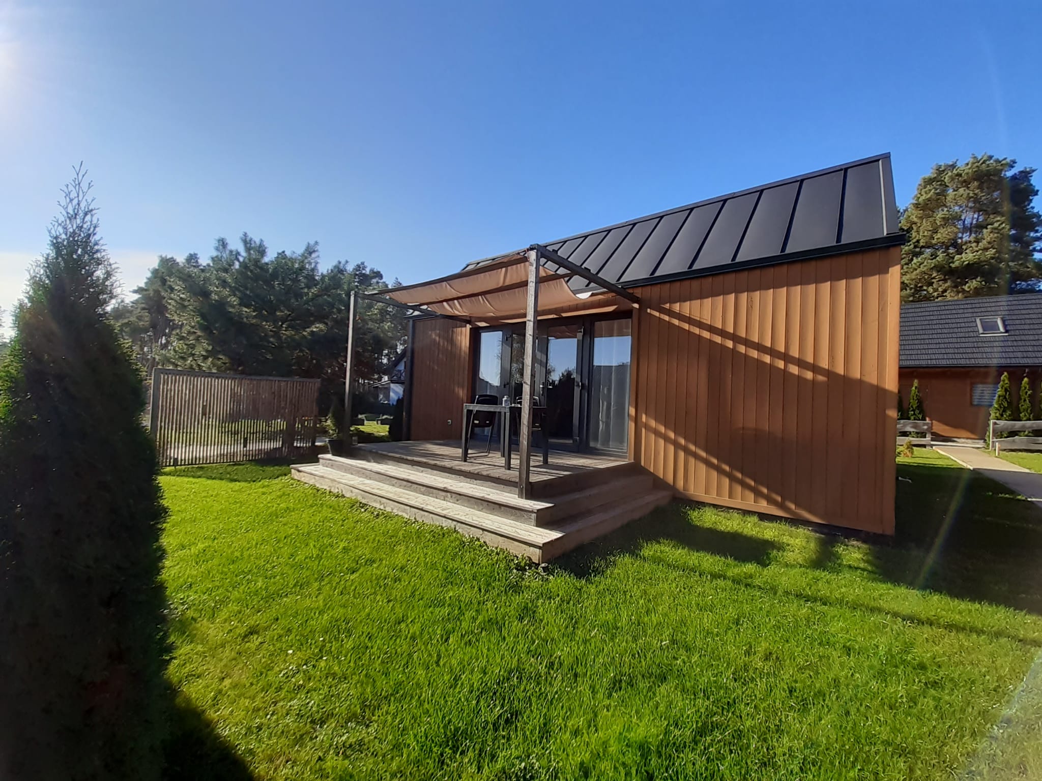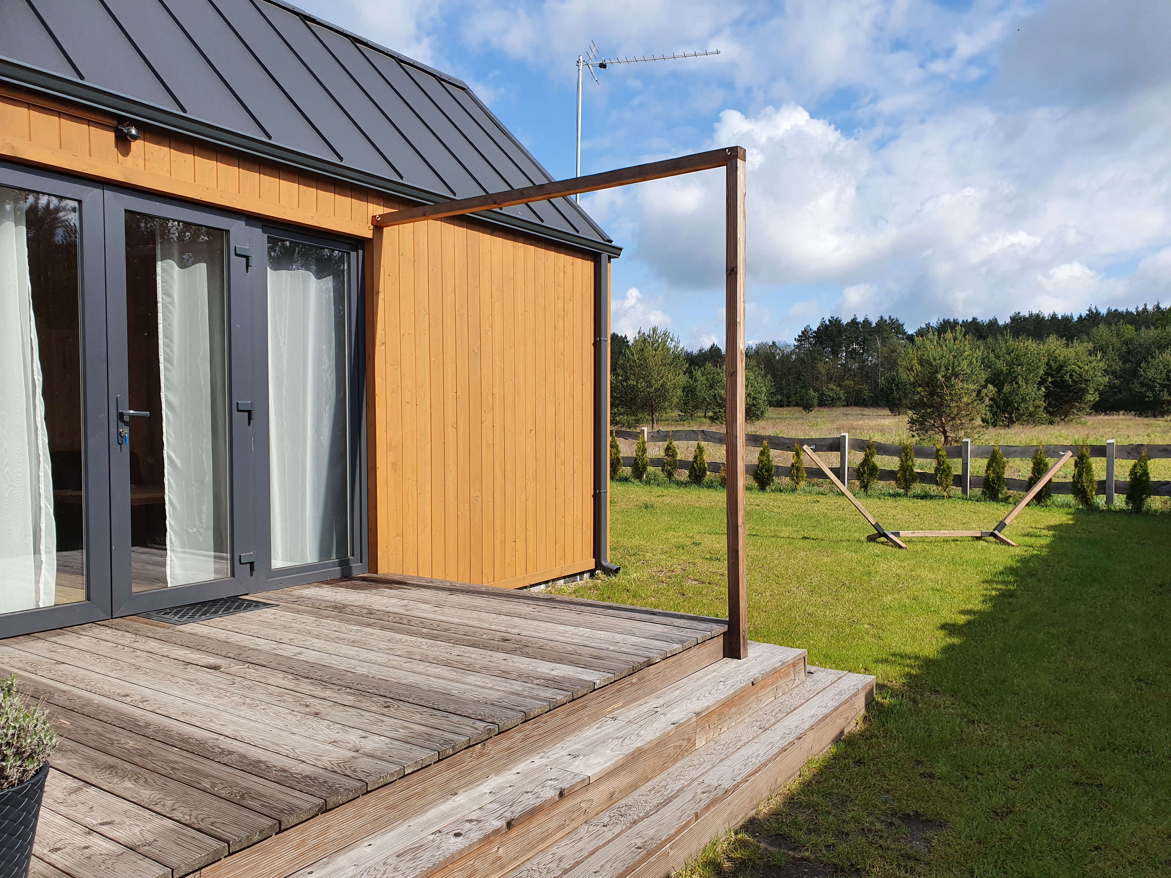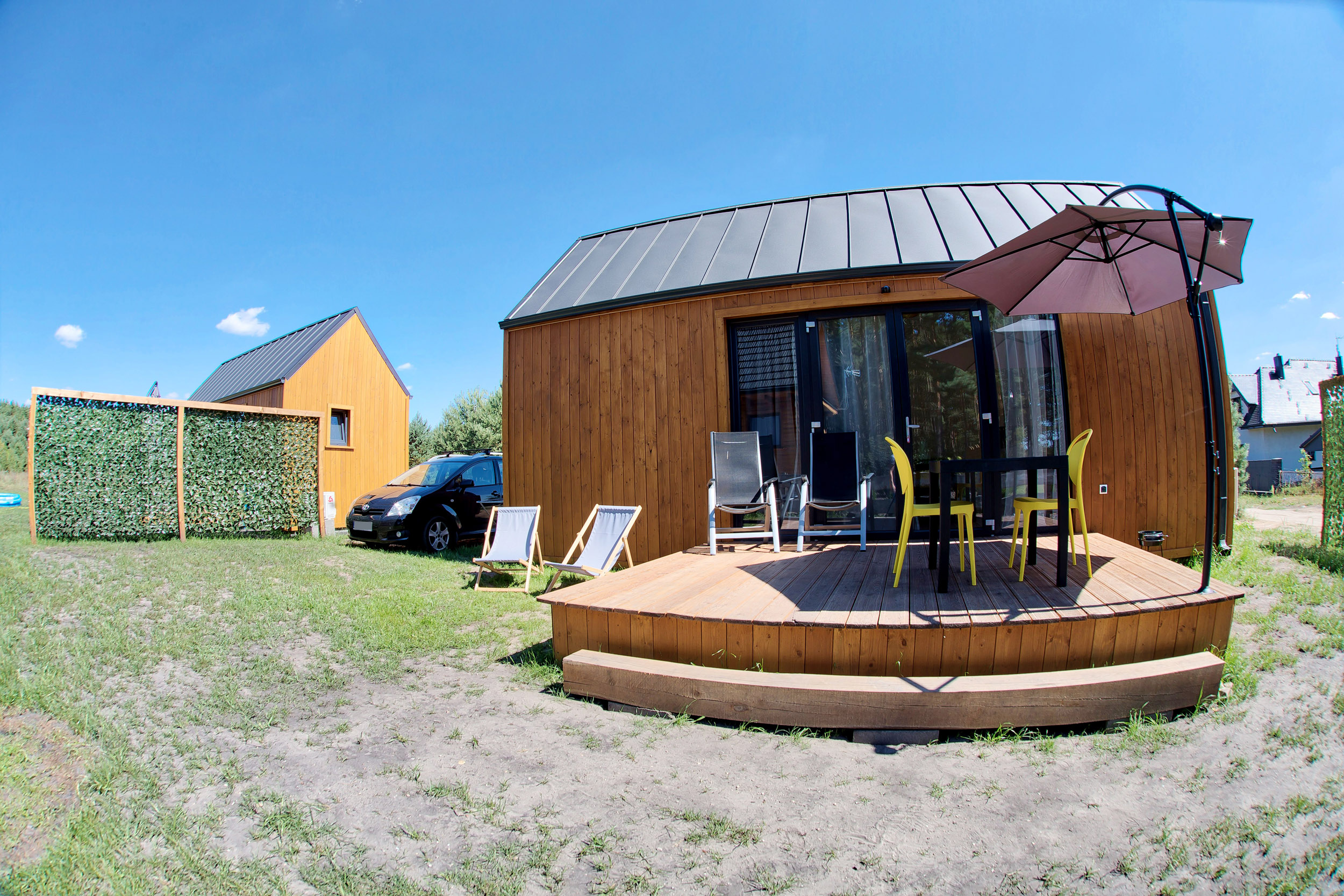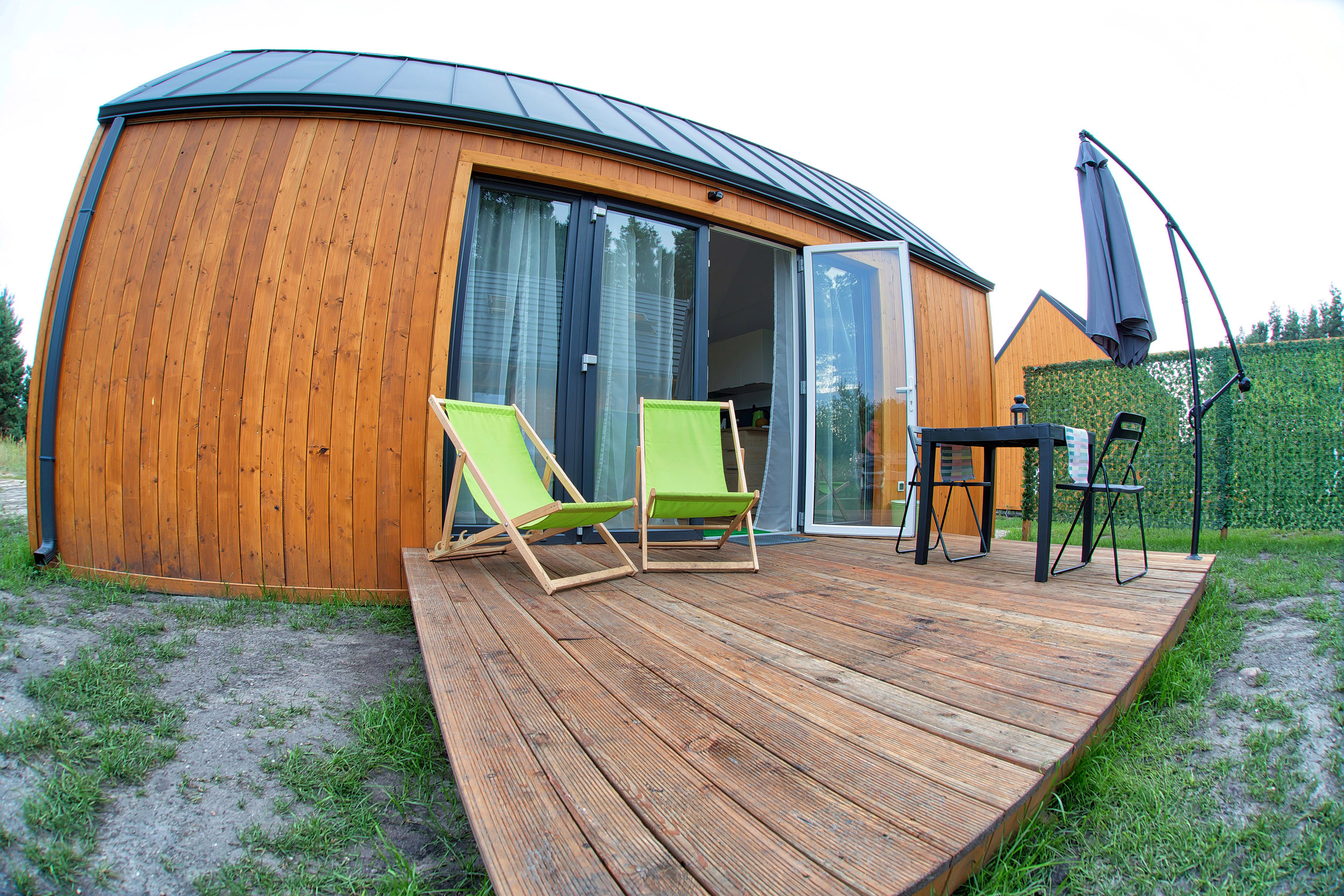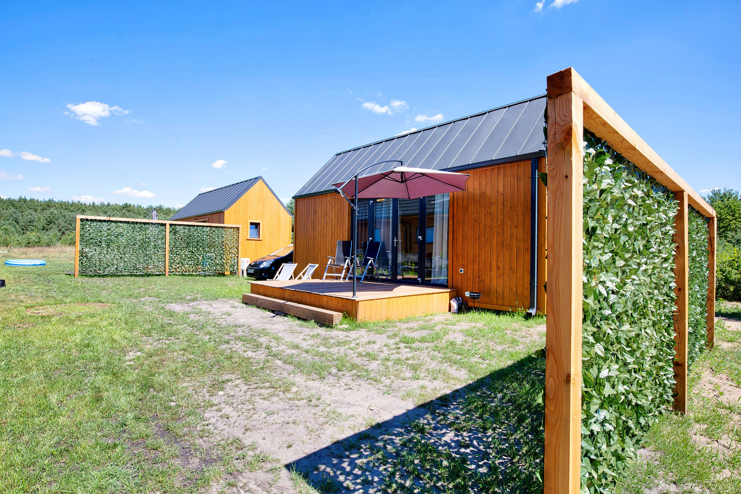 • Parasol, leżaki – każdy z domków posiada parasol tarasowy oraz leżaki.