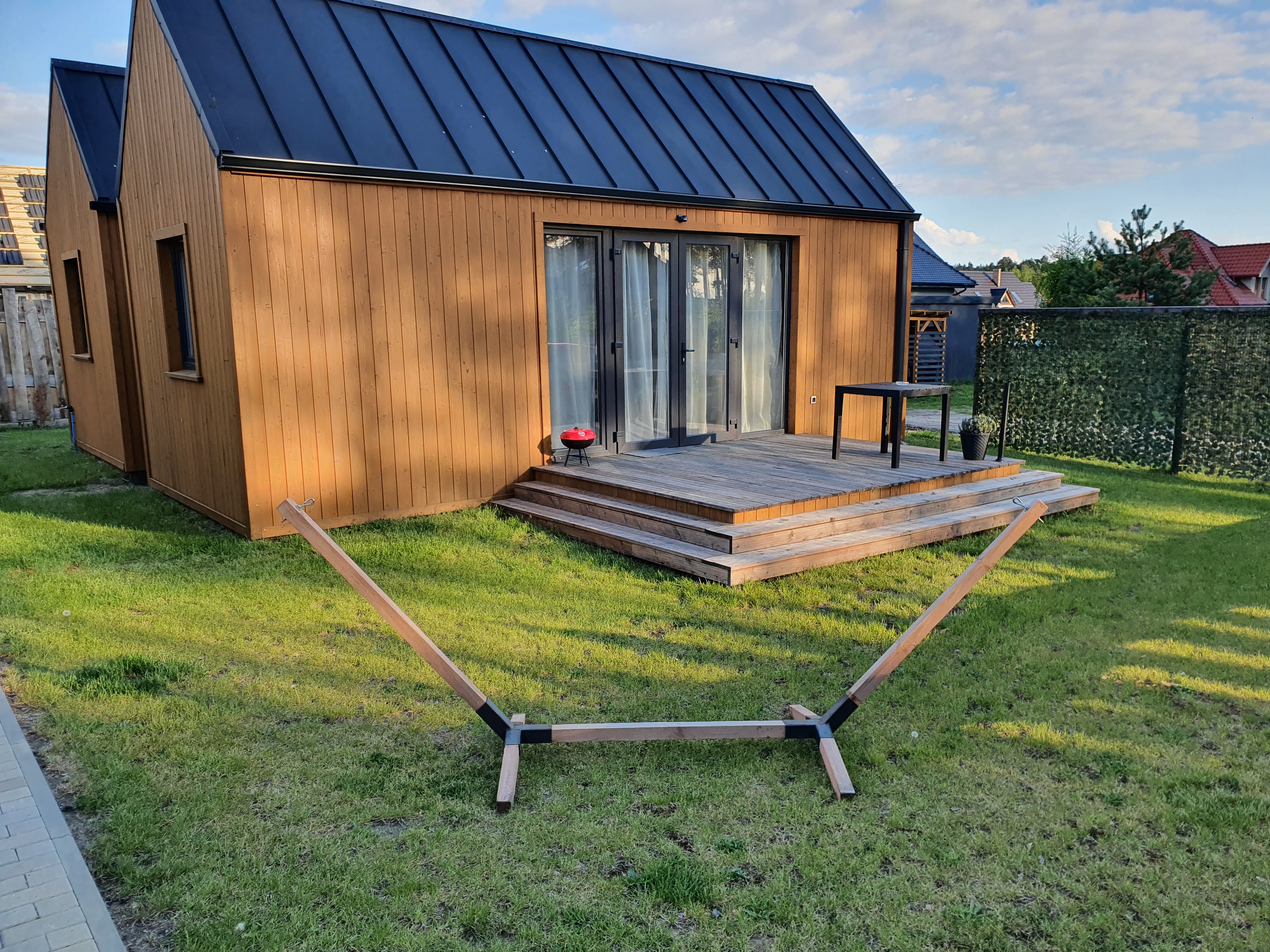 • Grill – Każdy domek posiada swojego grilla na tarasie. Opał we własnym zakresie. Na tarasie znajdują się również meble ogrodowe, gdzie można posiedzieć podczas grilla.