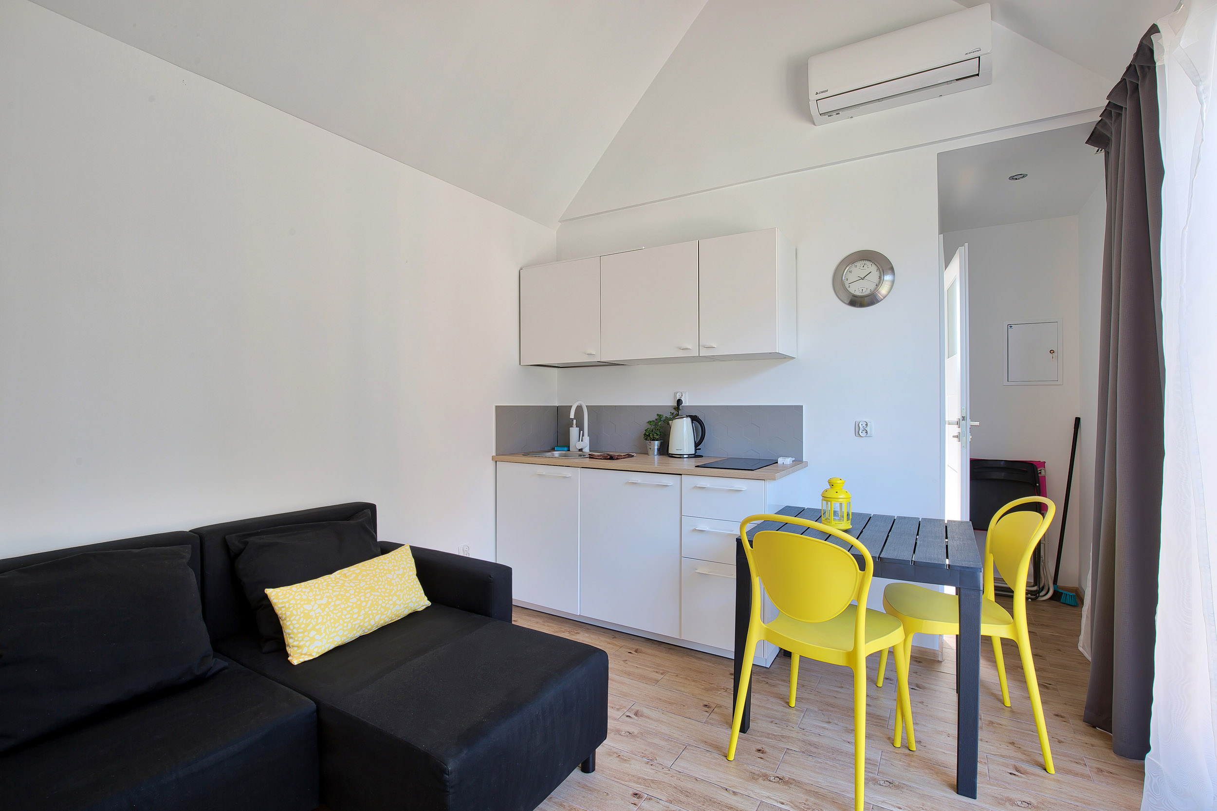 • Klimatyzacja – Domki są w pełni klimatyzowane. Można je również ogrzewać.