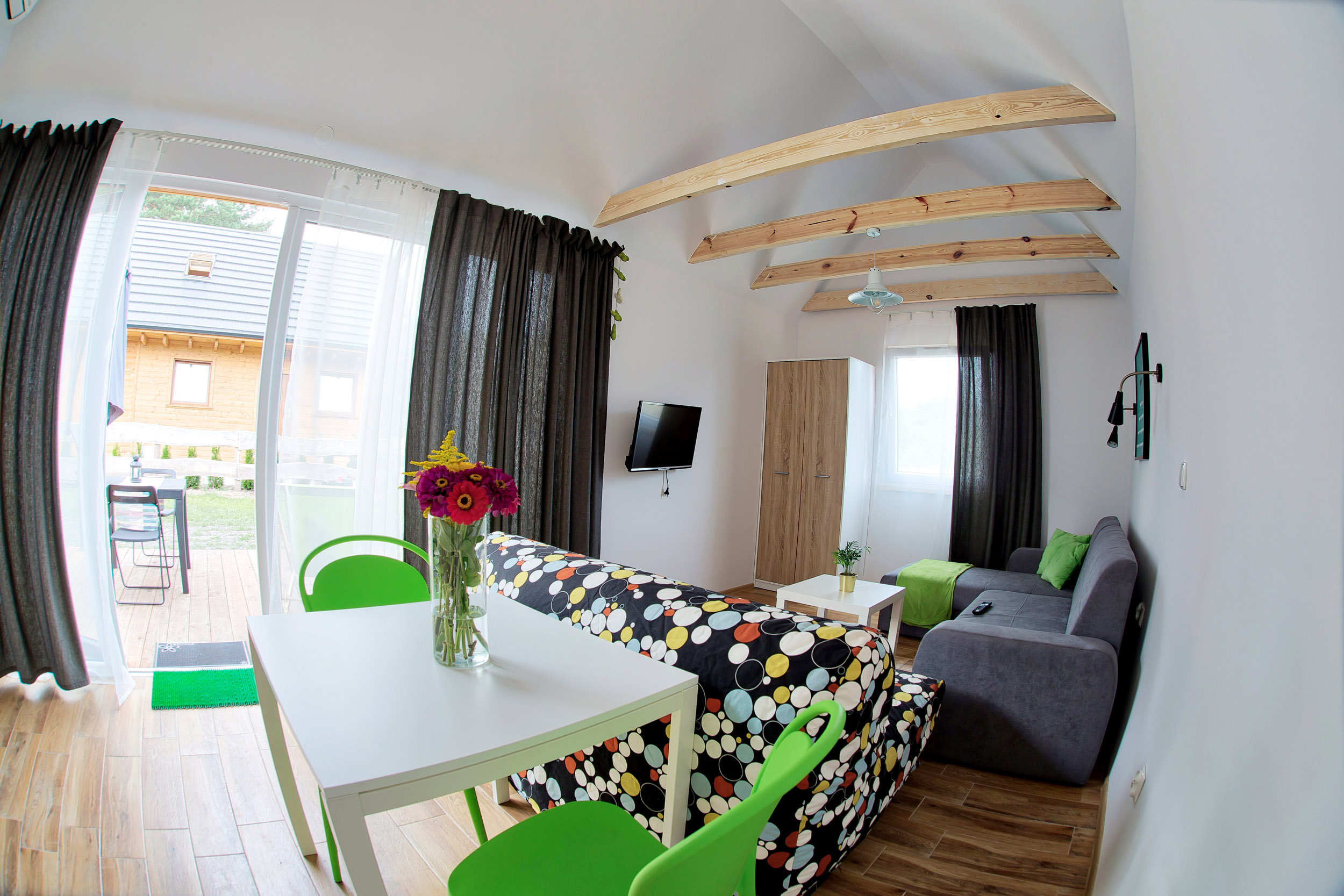 • dodatkowa osoba: 50 zł (maksymalna liczba osób w domku: 4)